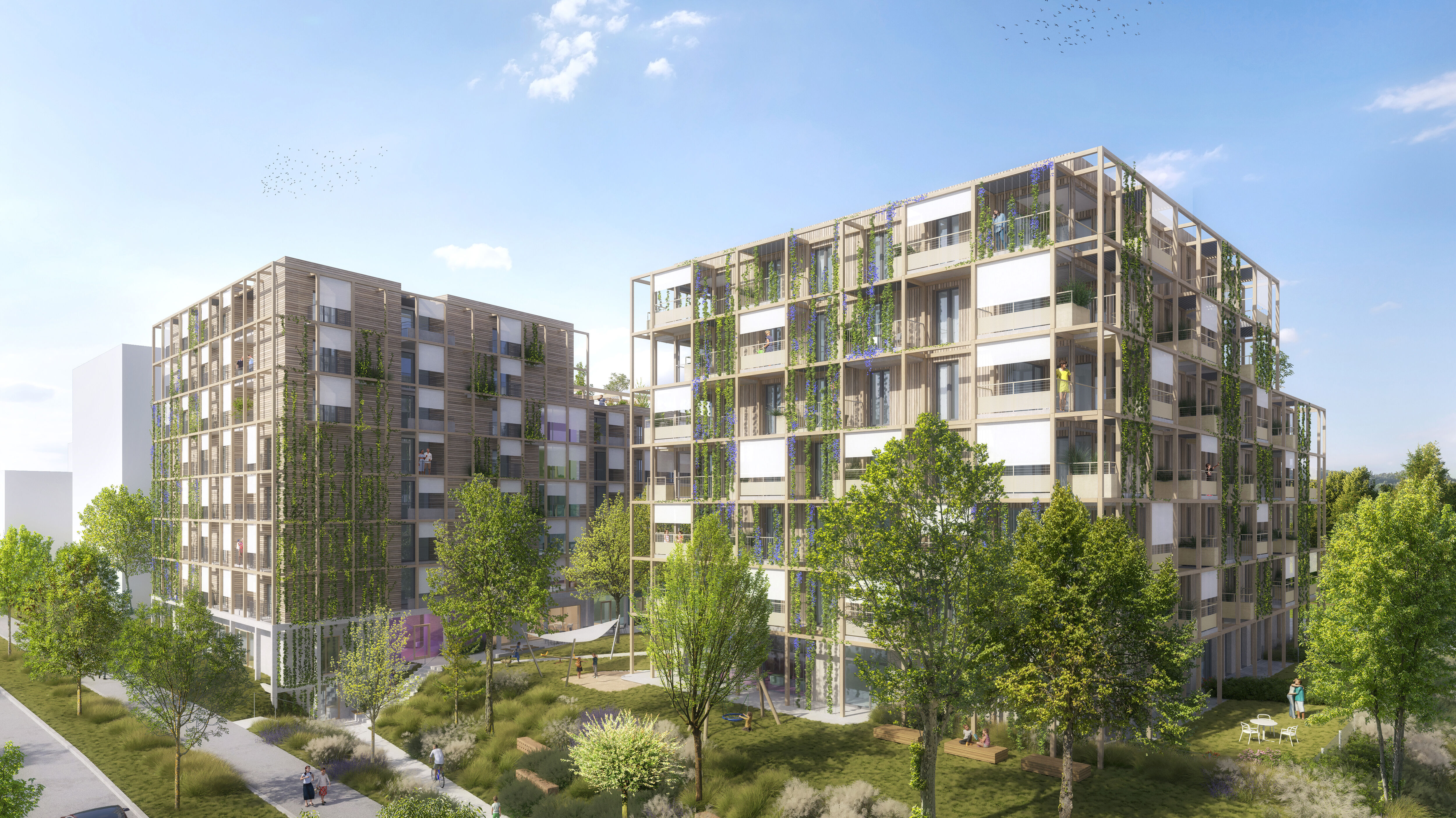 Das Wohnprojekt auf Bauplatz 5 umfasst 44 geförderte Mietwohnungen mit Superförderung, wovon 23 Wohnungen nach den SMART-Richtlinien errichtet werden. Die Wohnungen verteilen sich auf zwei kompakte sieben- und achtgeschossige Gebäude. Eine den Gebäuden vorgelagerte Regalkonstruktion umfasst Balkone und sorgt aufgrund der Begrünung für mehr Sonnenschutz. Heizung und Warmwasser werden mittels Wärmepumpen und Tiefensonden erzeugt, kombiniert mit Fernwärme. Für eine regenerative Stromerzeugung sorgt eine Photovoltaikanlage.