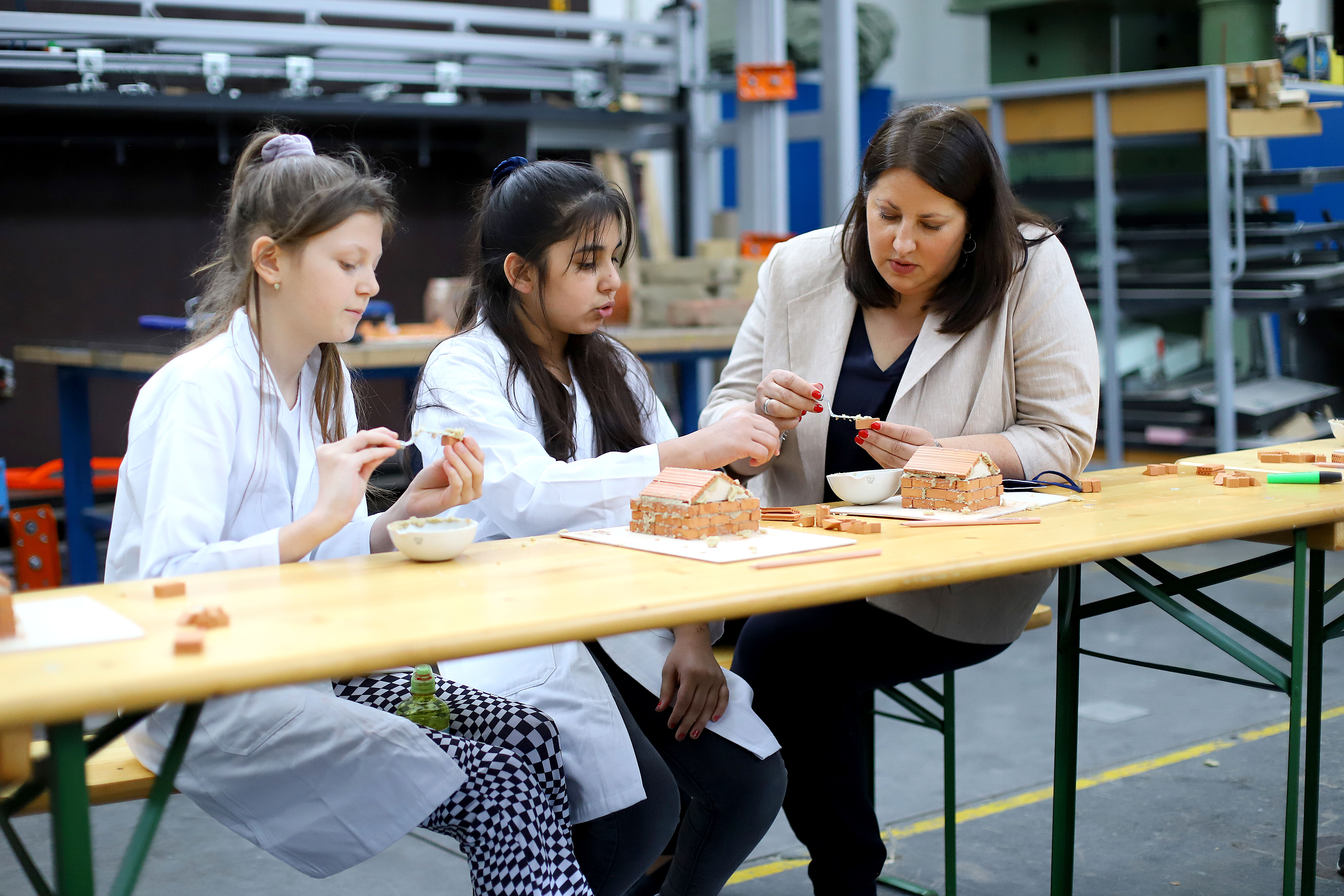 Erprobe unterschiedliche Werkzeuge und Baumaterialien und bau dein eigenes Tiny-Haus mit echten (sehr kleinen) Ziegelsteinen.